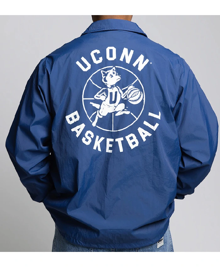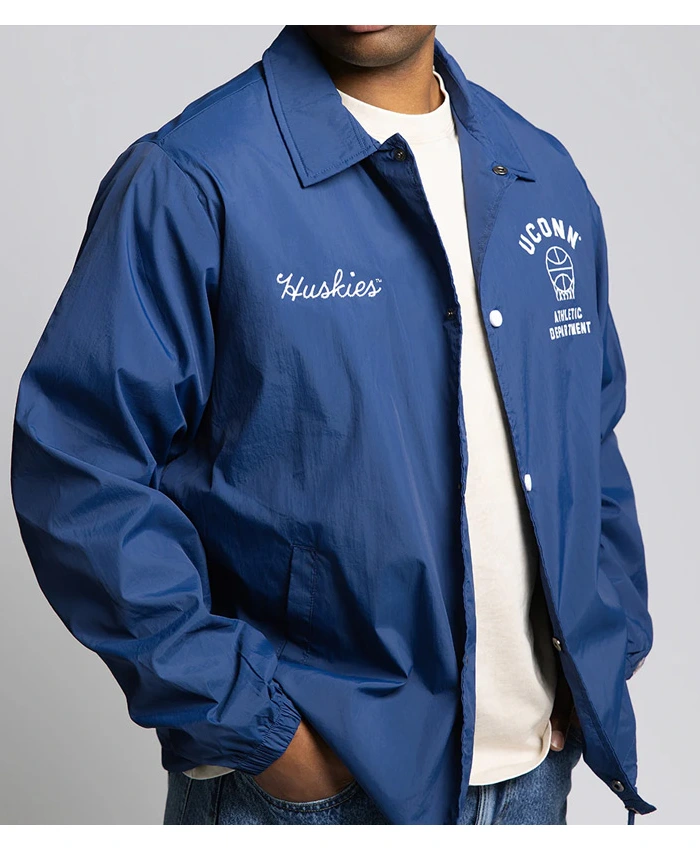 Crafted from lightweight yet durable fabric, this jacket ensures comfort, breathability, and easy layering for all-season wear. The retro styling highlights UConn Huskies heritage while blending seamlessly with modern streetwear fashion trends.