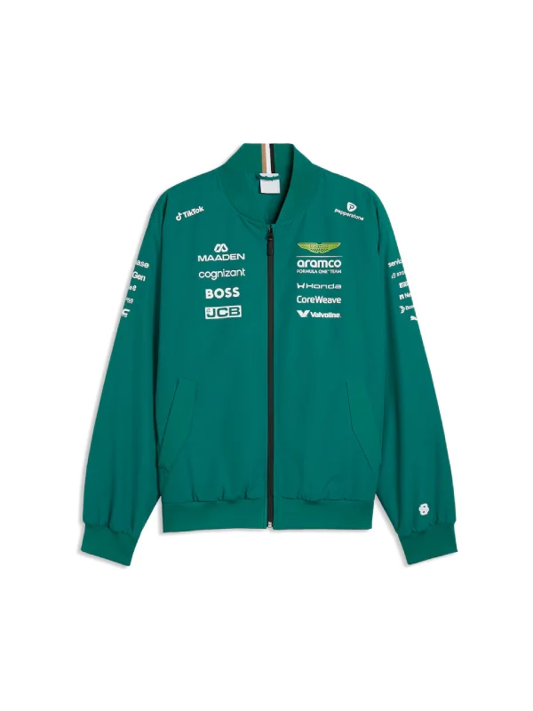 Show your support for Aston Martin F1 Team with the 2026 Aston Martin F1 Aramco Cognizant Bomber Jacket. Crafted with premium materials and a sleek bomber silhouette, this jacket blends high-performance style with everyday wearability.