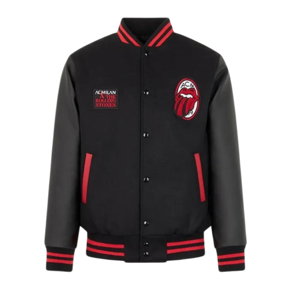 Celebrate iconic style and football heritage with the AC Milan x Rolling Stones Signature Varsity Jacket. This exclusive collaboration blends sporty varsity design with bold Rolling Stones branding, creating a standout piece for fans and fashion enthusiasts alike.Crafted from high-quality materials, the jacket features a comfortable fit, durable stitching, and soft lining for all-day wear. Perfect for layering over casual outfits or showing off your team and music fandom, it’s a versatile addition to any wardrobe.