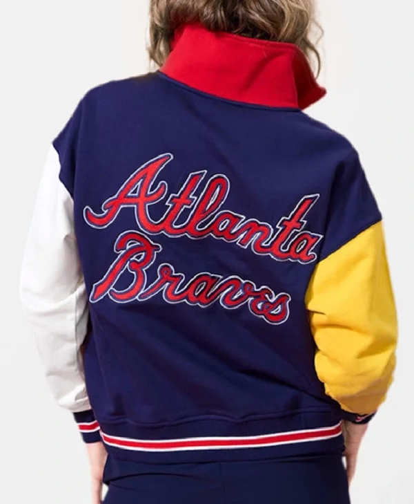 The Colorblock Atlanta Braves Quarter-Zip Sweatshirt, inspired by the iconic Atlanta Braves. This sweatshirt blends sporty aesthetics with modern colorblock styling, making it a standout piece for fans and streetwear lovers.
