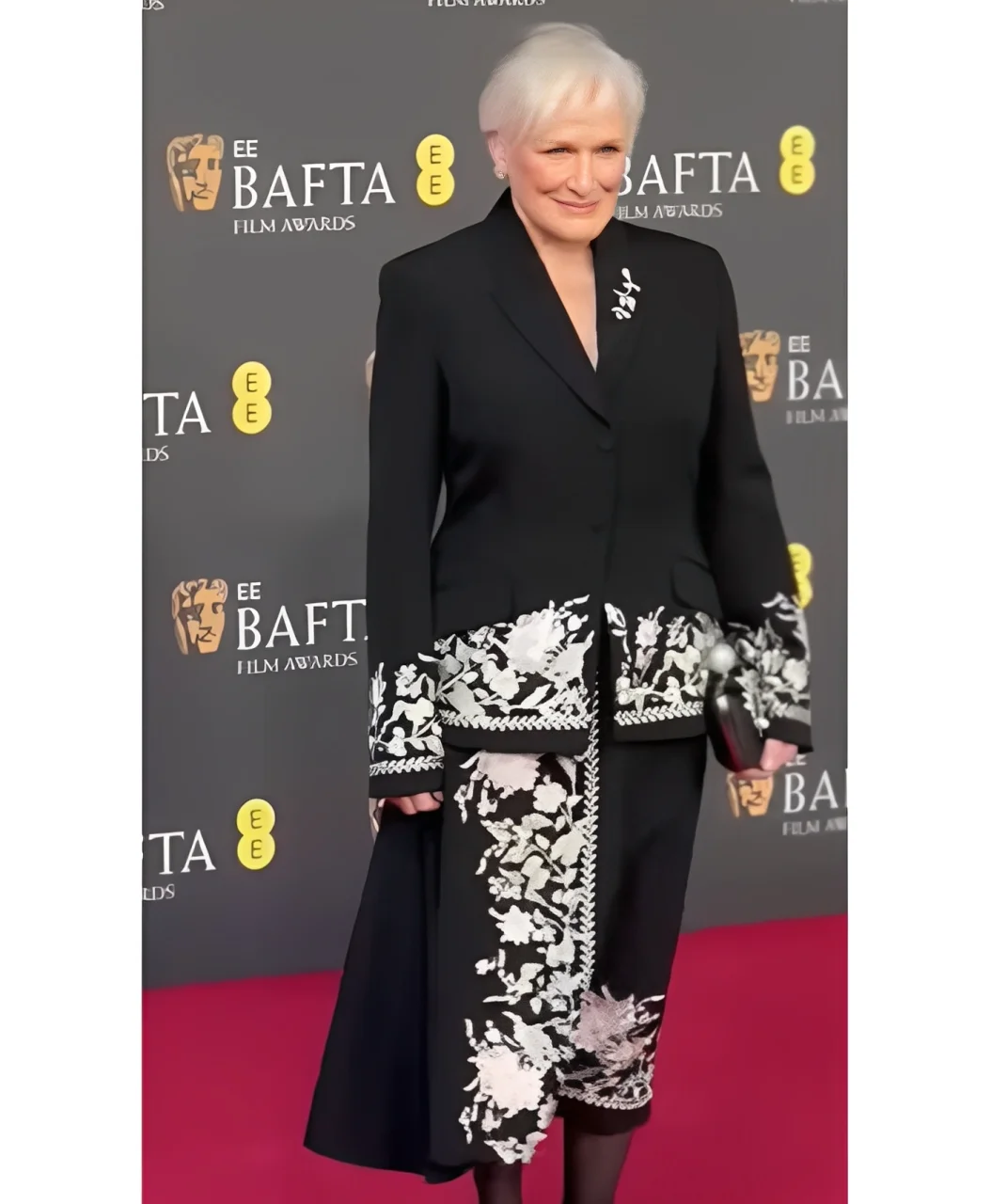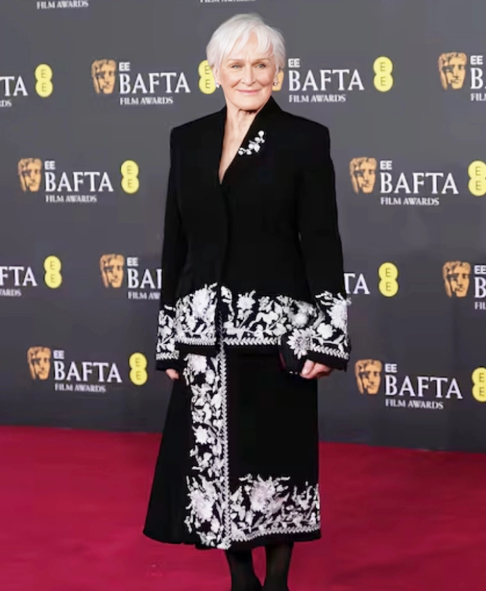 BAFTA 2026 Glenn Close Black Floral Long Coat