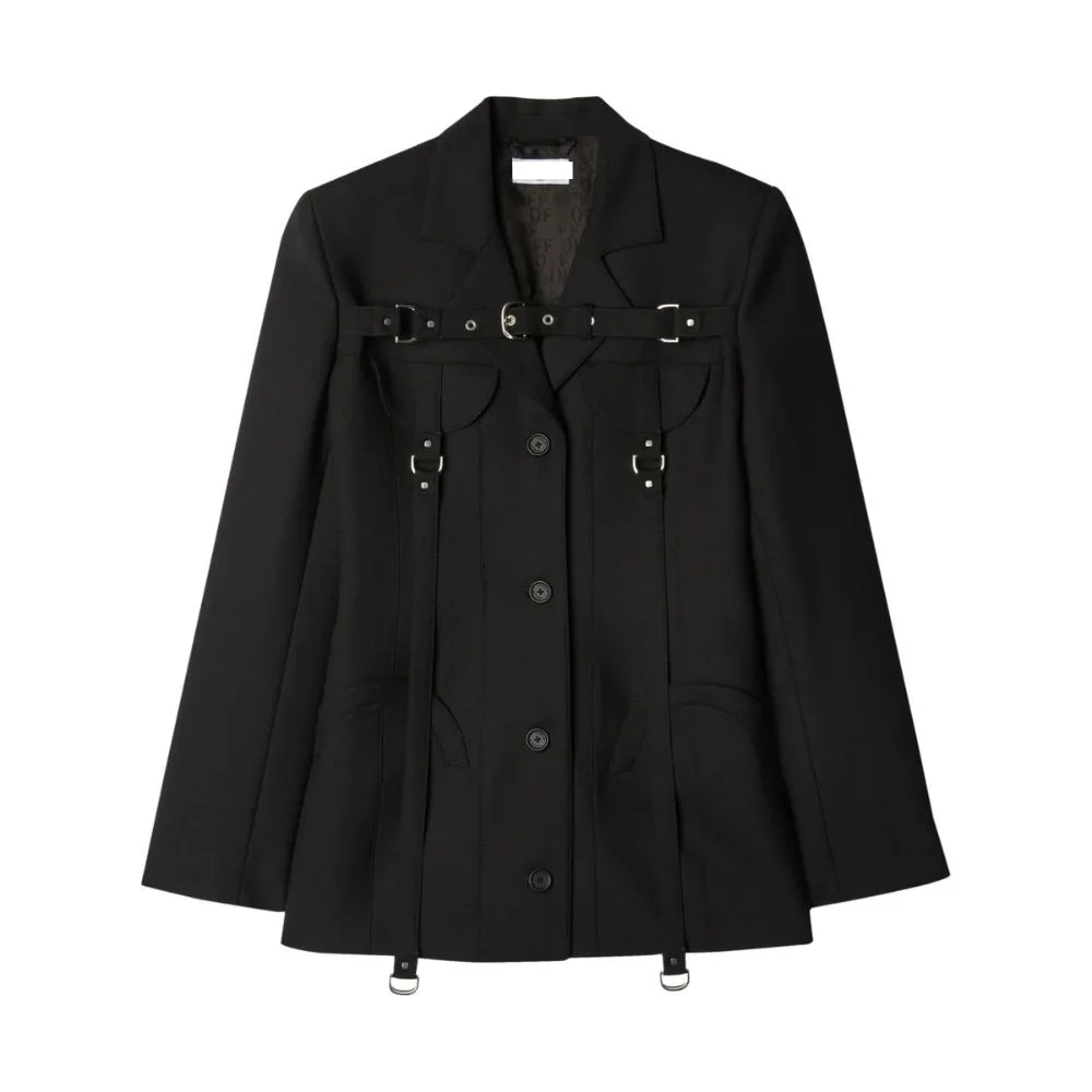 This black cargo jacket combines rugged utility with modern streetwear style. Crafted from durable fabric, it features multiple cargo pockets and adjustable buckle details for a functional yet edgy look. Designed for a comfortable fit, this jacket is perfect for layering over casual outfits or adding a bold statement to your everyday wardrobe.