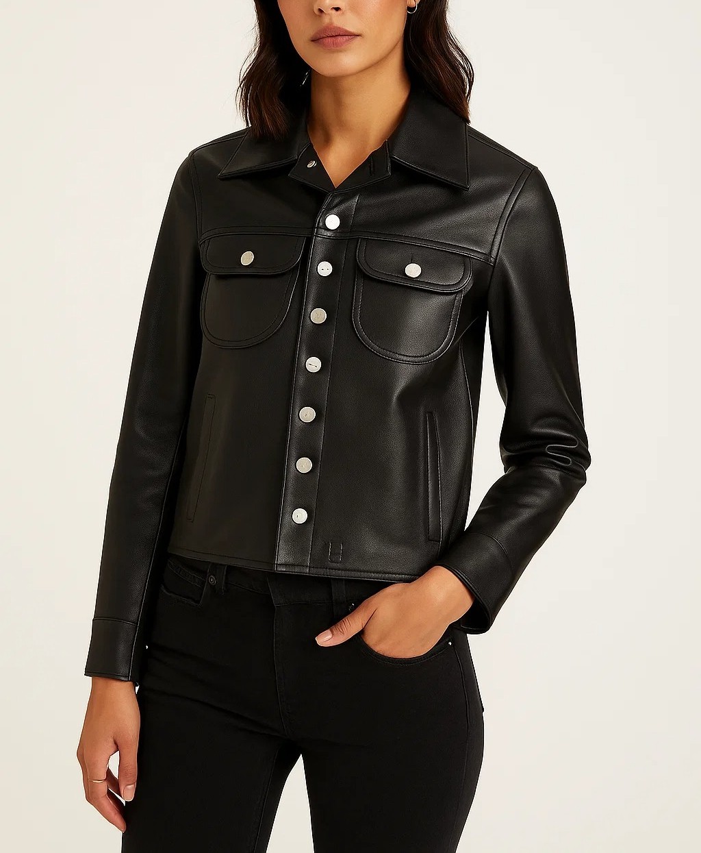 Elevate your everyday style with this Black Lambskin Leather Trucker Jacket, crafted from ultra-soft premium lambskin for a smooth, lightweight feel. Designed in a classic trucker silhouette, it blends timeless structure with modern comfort. The sleek black finish, button-down front, and practical pocket layout make it a versatile piece you can pair with casual or smart outfits. Whether for daily wear or a polished night look, this jacket delivers effortless style and long-lasting durability.