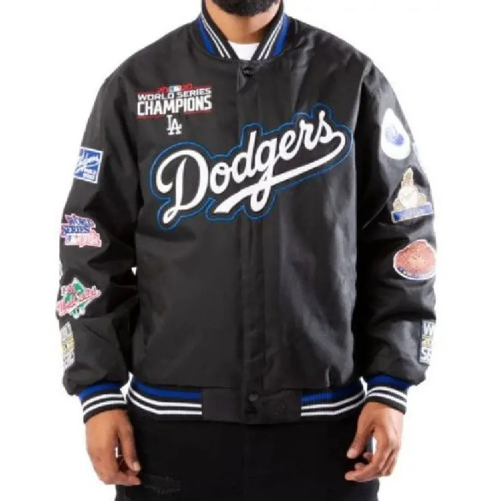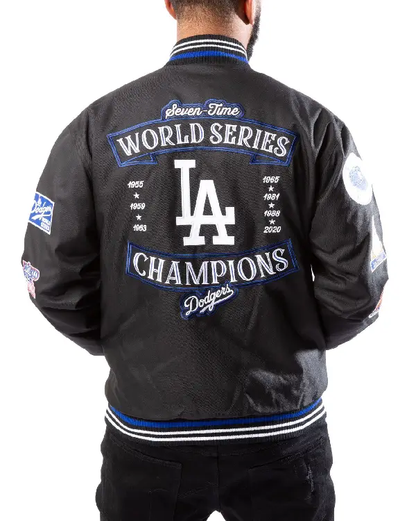 Celebrate your team spirit with the Black Los Angeles Dodgers Championship Jacket. Designed in classic black, it features official Dodgers branding and a sleek, comfortable fit. Perfect for game days, casual outings, or showing off your championship pride in style.
