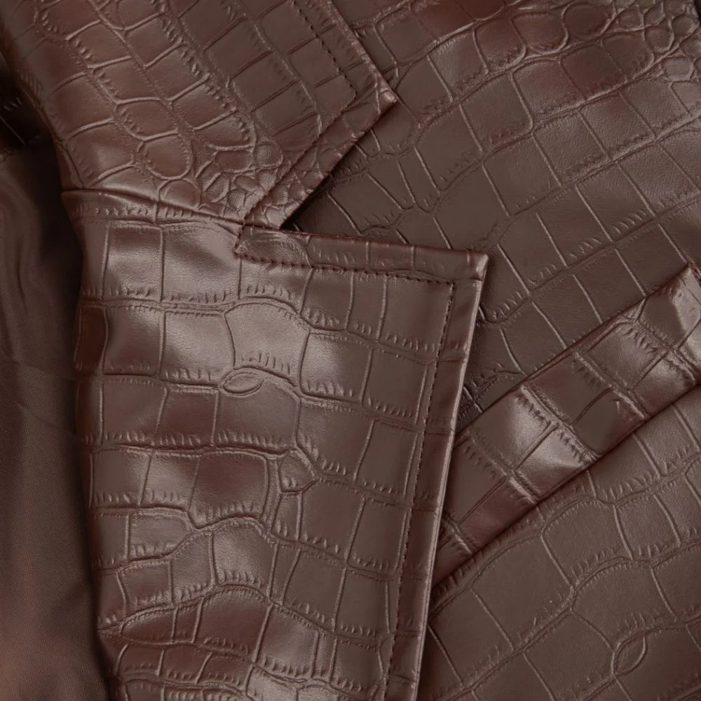 Bought this blazer for myself and it looks amazing. The faux leather feels soft and the notched collar gives it a classy touch. Shipping was fast.