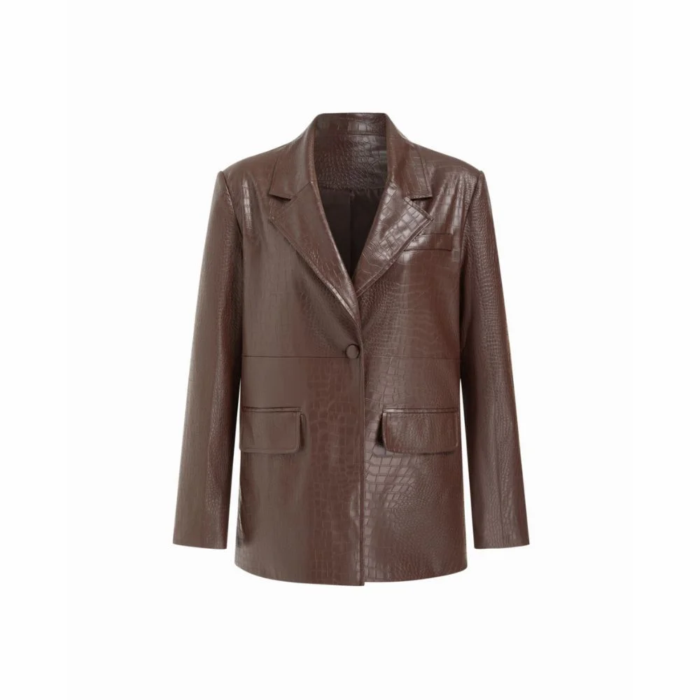 Elevate your style with this burgundy oversized blazer crafted from premium faux leather. Featuring a classic notched collar and relaxed fit, it combines edgy sophistication with effortless comfort. Perfect for layering over casual or dressy outfits for a bold, modern look.