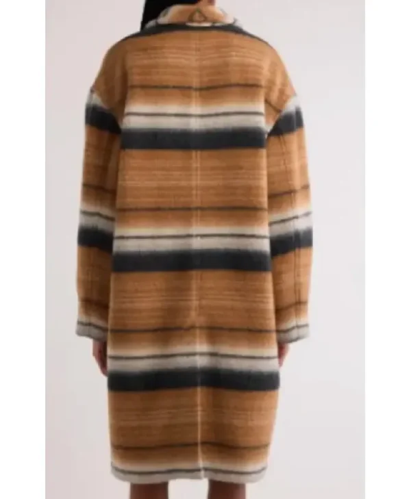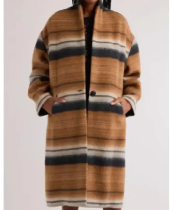 Elevate your wardrobe with the Carey Mulligan Beef Season 2 Stripe Coat, inspired by her sophisticated look in the acclaimed series Beef. This coat blends timeless elegance with a modern striped design, making it a refined fashion statement.