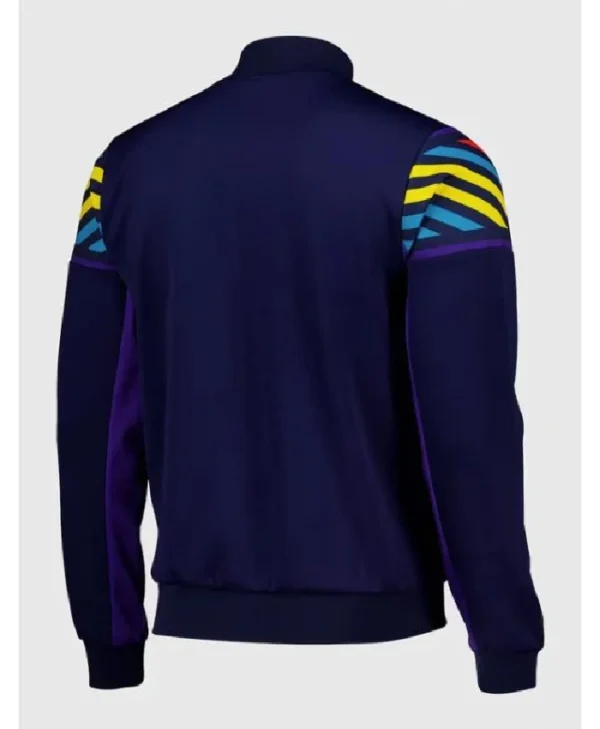 Crafted from high-quality, lightweight fabric, it offers comfort and durability for everyday wear. The smooth inner lining ensures ease of movement, while the full-zip front allows versatile styling. Ribbed cuffs and hem provide a secure fit, and the bold retro blue design makes it a standout piece for any Chelsea supporter.