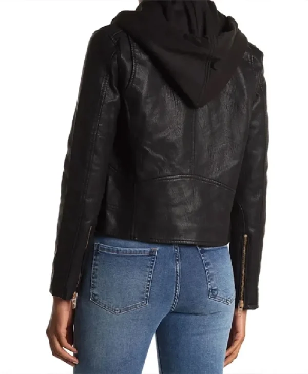 Christina Hall Black Leather Hooded Jacket