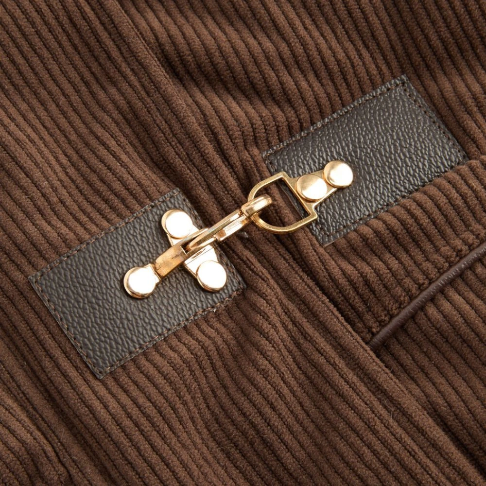 Corduroy Oversized Puffer Jacket with Metal Buckle and Zip