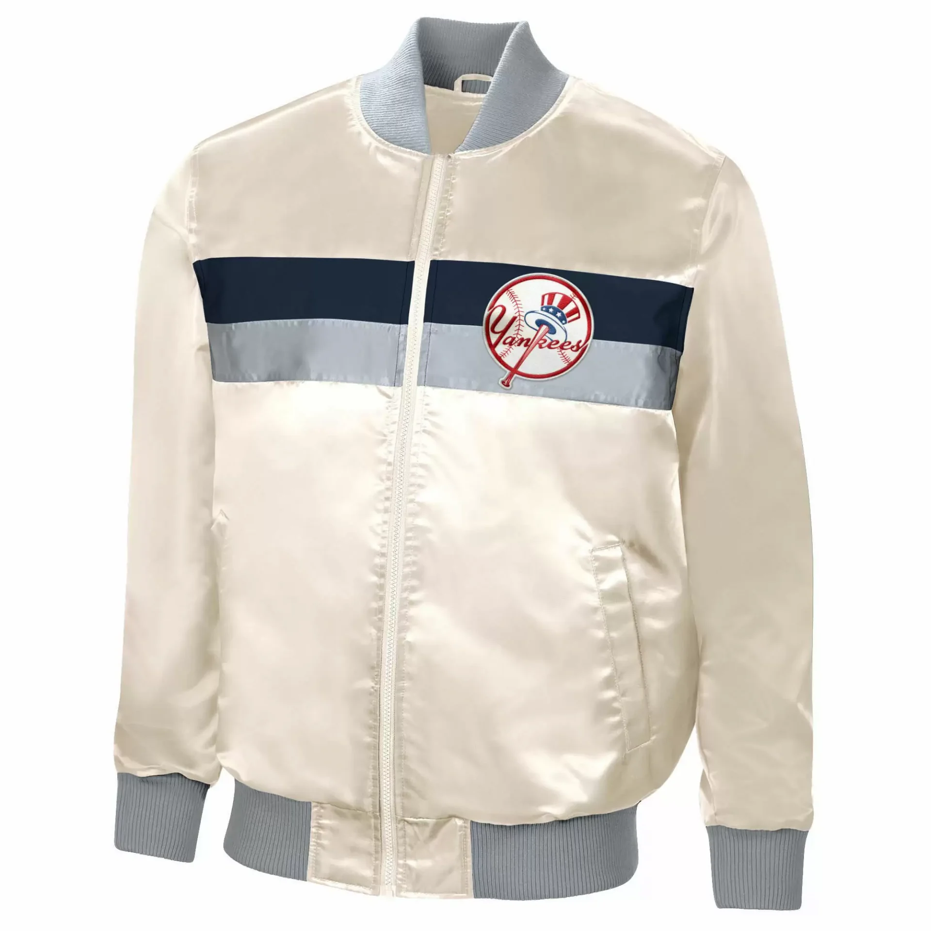 Cream New York Yankees Ambassador Zip Satin Jacket
