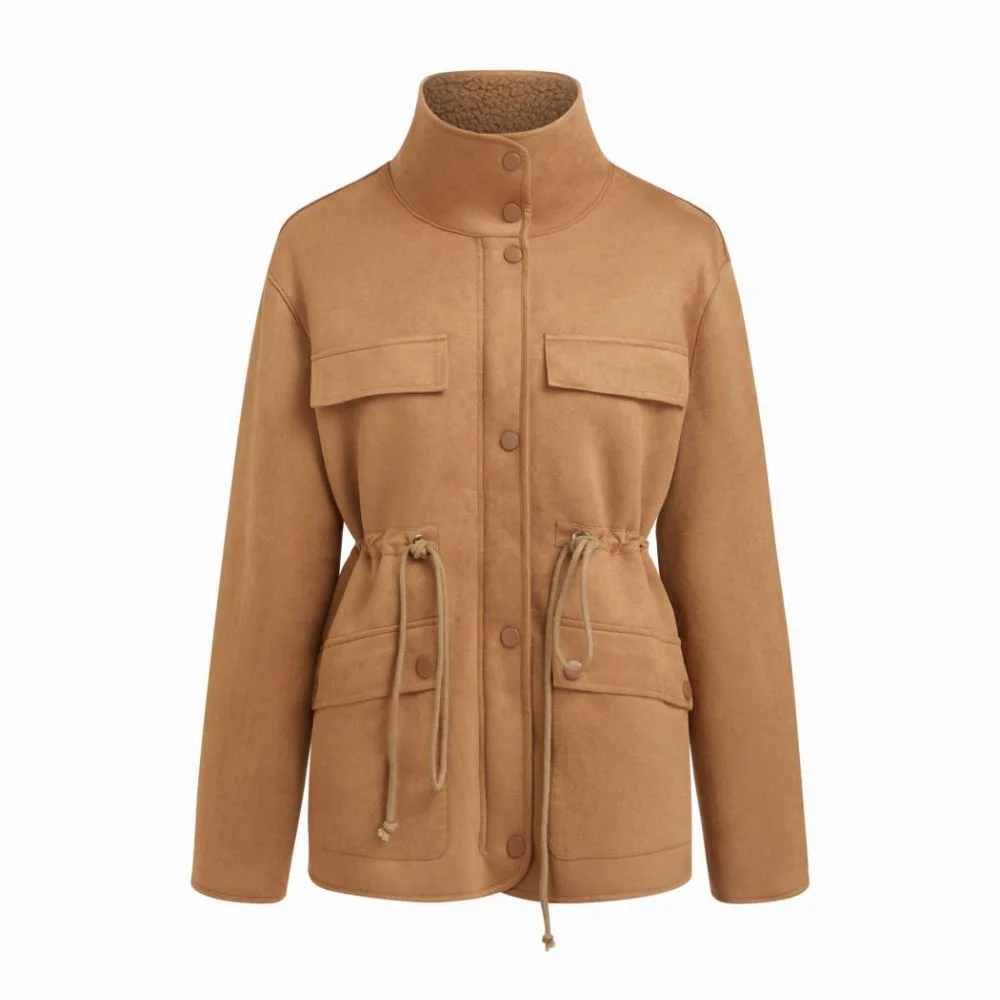 Stay cozy and stylish with the Faux Shearling Collar Longline Oversized Zip Jacket. Crafted for a relaxed fit, it features a soft faux shearling collar, full-length zip closure, and adjustable drawstring for a customizable silhouette. Its longline design and oversized cut make it perfect for layering over casual or streetwear looks, combining comfort with contemporary edge.