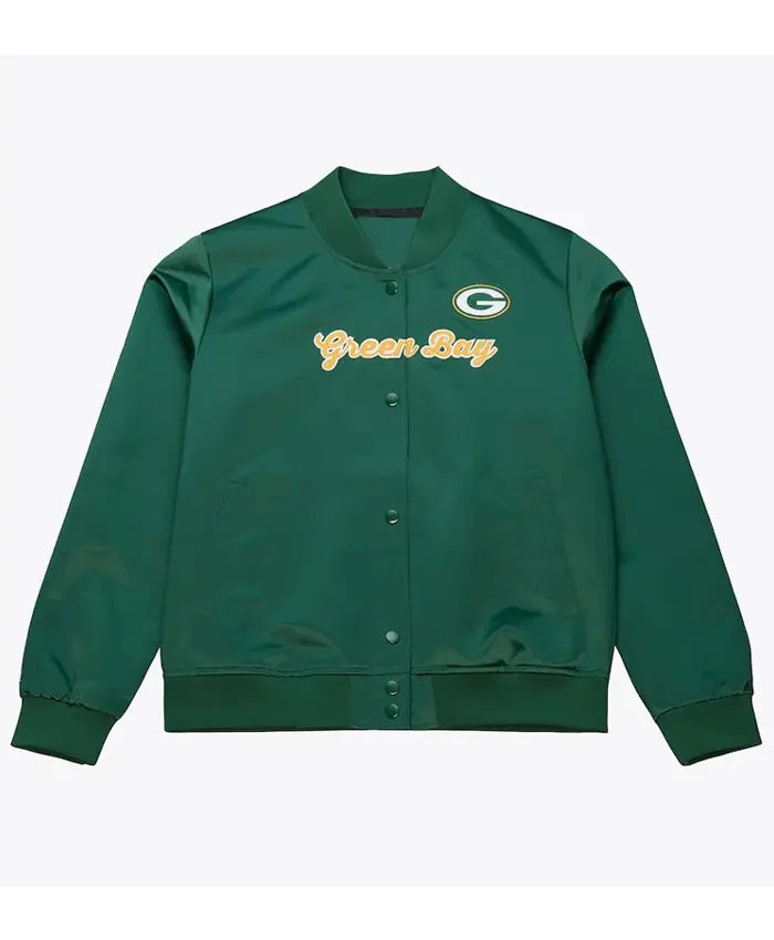 Green Bay Packers Retro Logo Satin Varsity Jacket