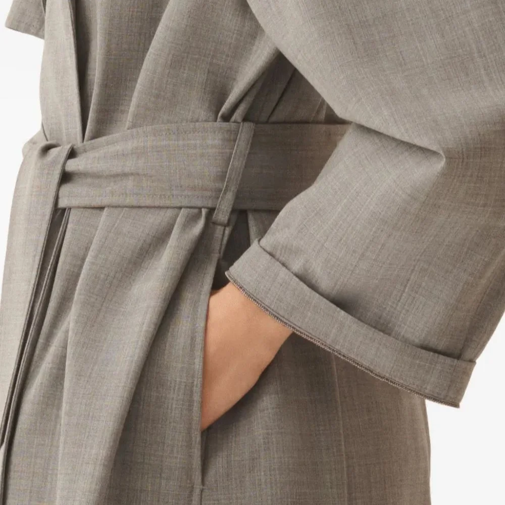 Grey Belted Collar Trench Coat