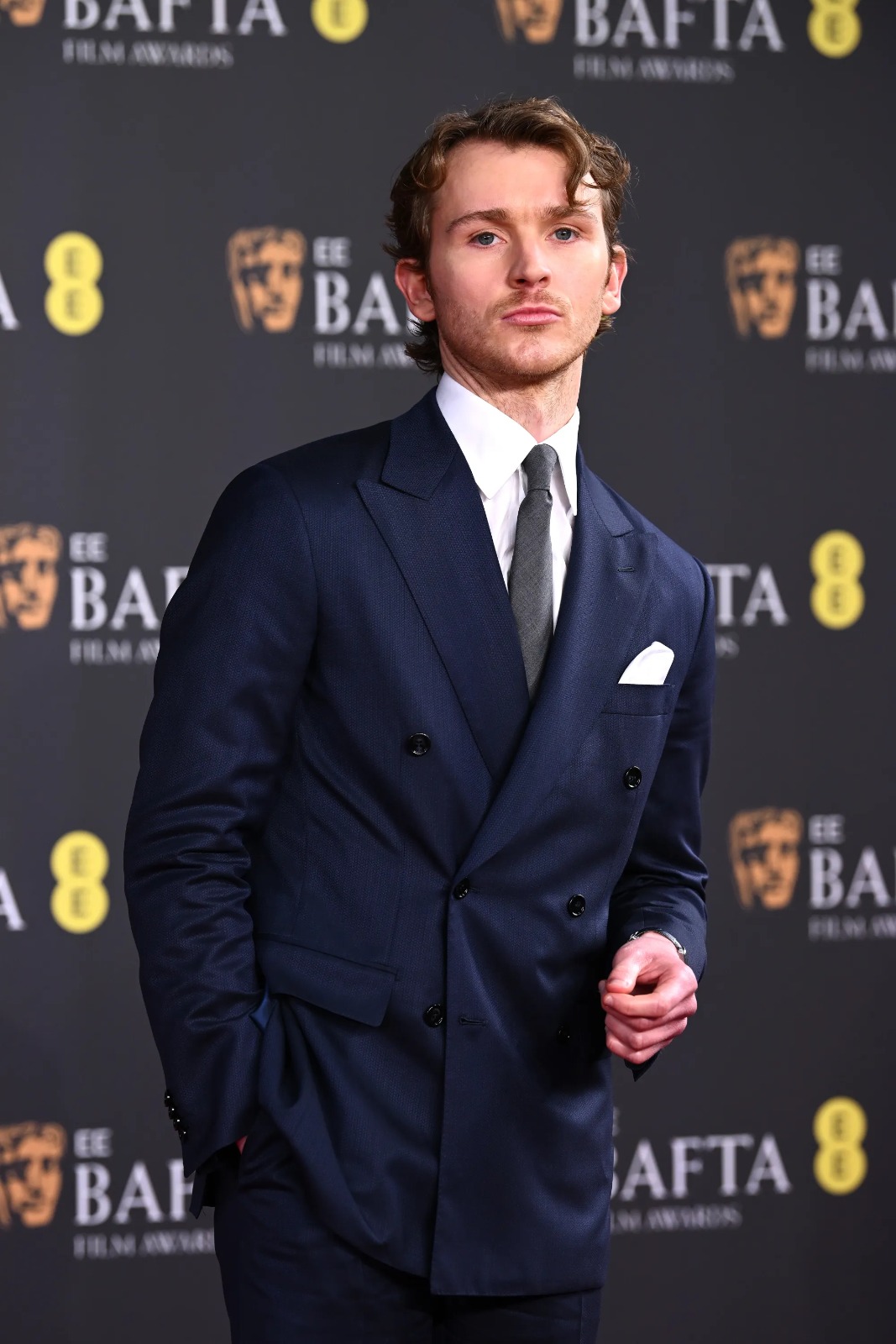 Harry Lawtey BAFTA 2026 Awards Navy Suit