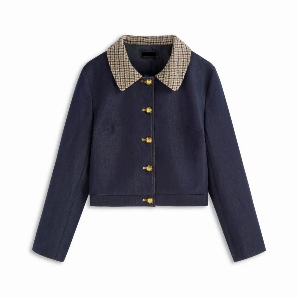 Haven Plaid Collar Two-Tone Oversized Crop Shacket