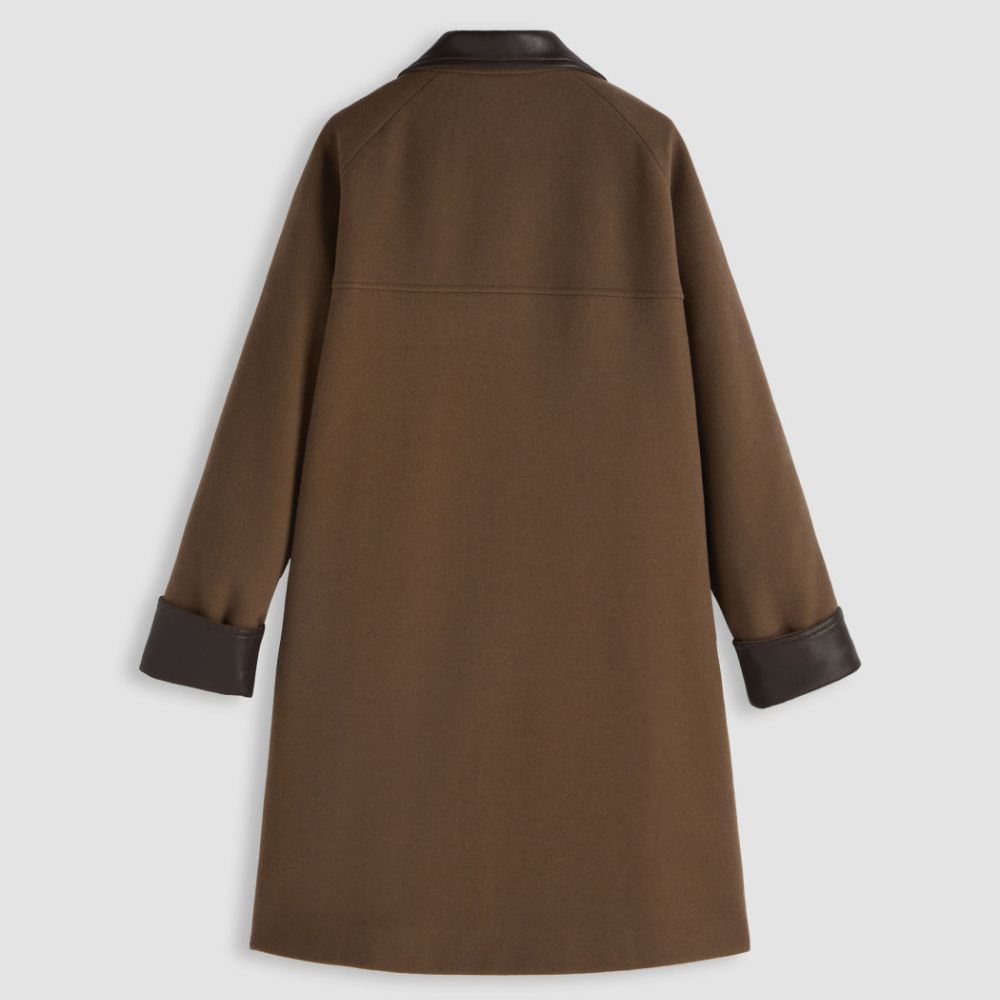 Hawthorne Faux Leather Barn Jacket with Contrasting Collar