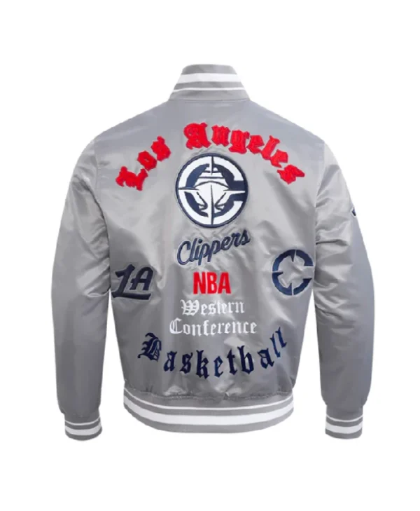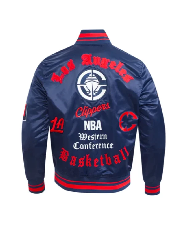 Perfect for game days or casual streetwear looks, this jacket is a must-have for fans who want to represent the LA Clippers with classic West Coast style.