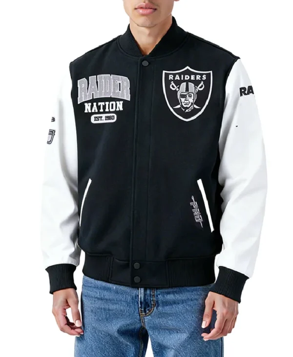 Las Vegas Raiders Black and White Varsity Jacket City Arch Edition