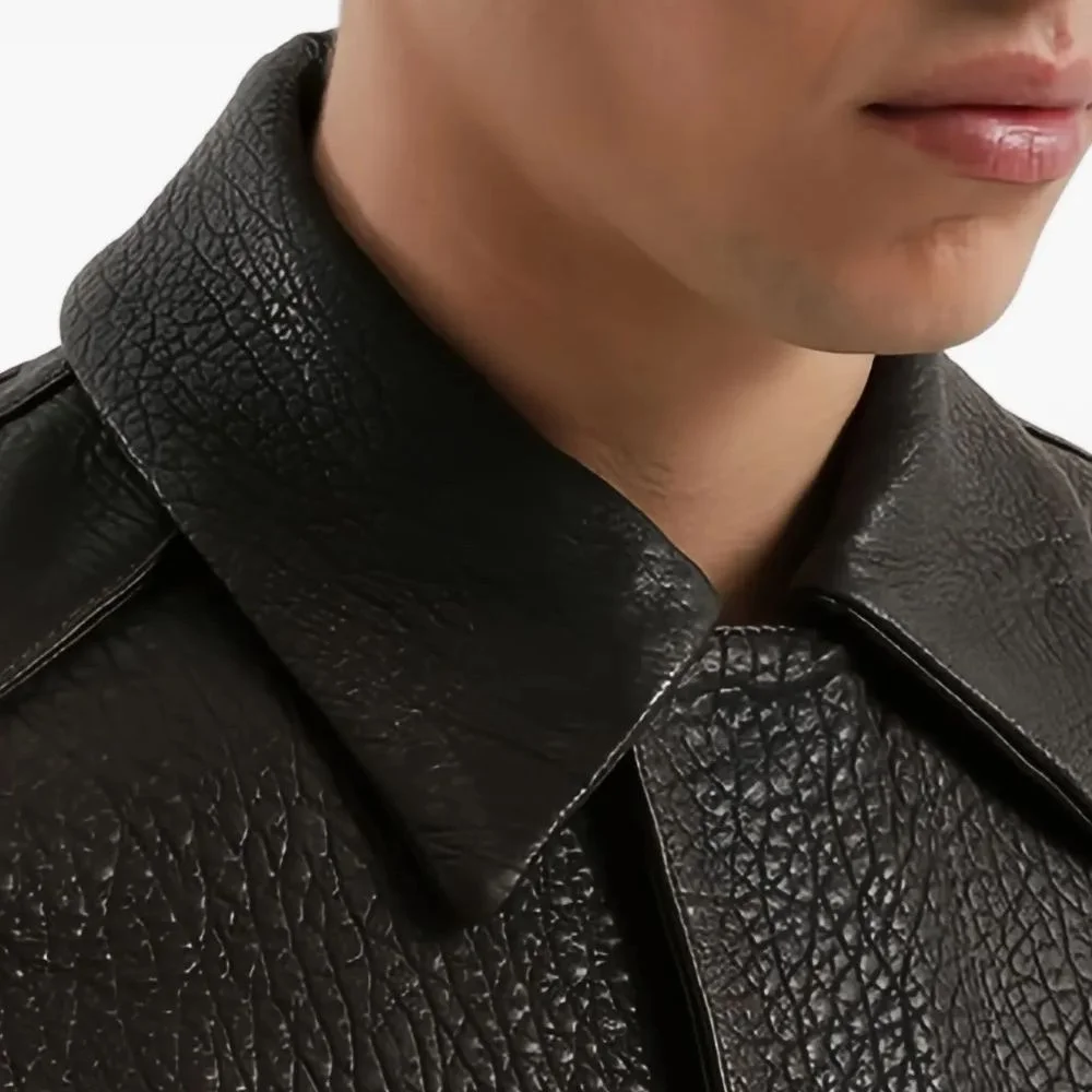 The Lennox Press-Stud Jacket combines edgy streetwear style with refined craftsmanship. Crafted from high-quality leather, it features press-stud detailing and a structured silhouette for a modern, bold look. Perfect for casual or statement outfits, this jacket adds an urban, fashion-forward edge to any wardrobe.
