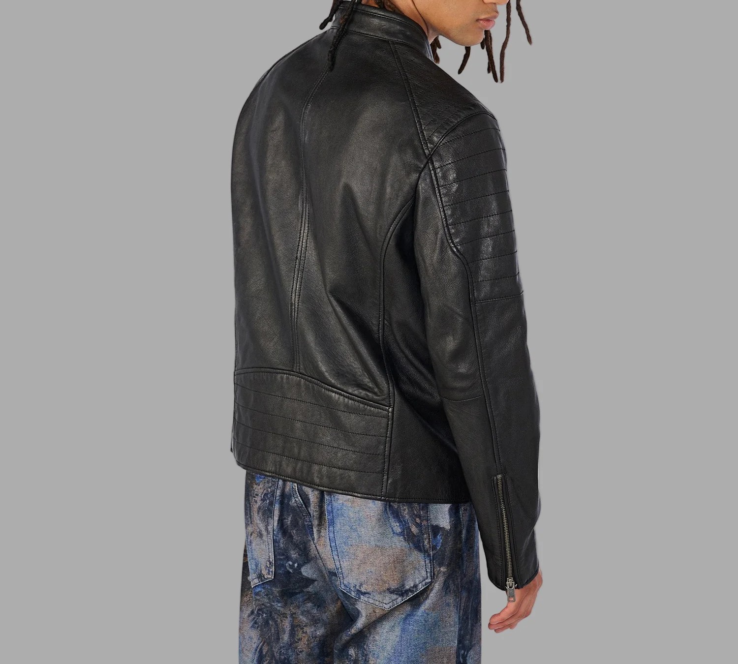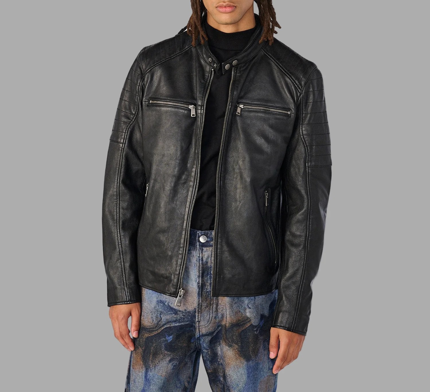 Men’s Black Collarless Moto Jacket