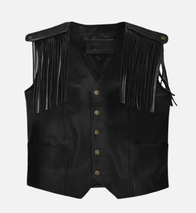 Exude confidence and individuality with the Men’s Fringed Black Leather Vest, a striking piece that merges western-inspired design with contemporary sophistication. Expertly crafted from premium-quality genuine or faux leather, this vest offers durability, comfort, and timeless appeal.
