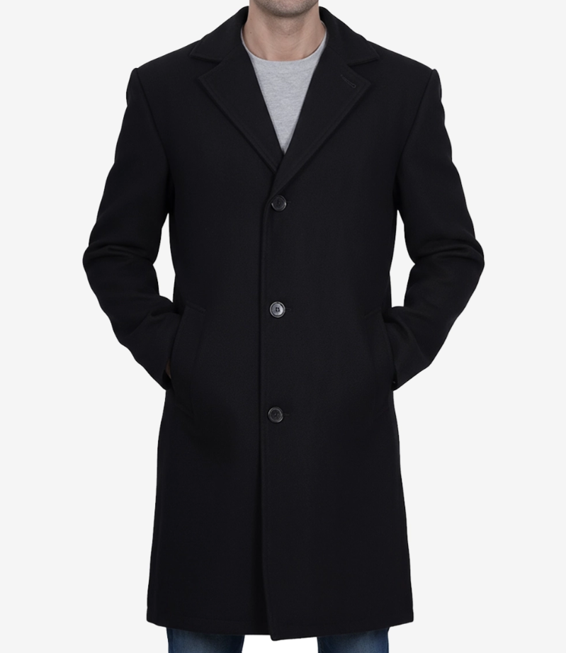 Shop Now Men’s Modern-Fit Black Wool Single-Breasted Coat