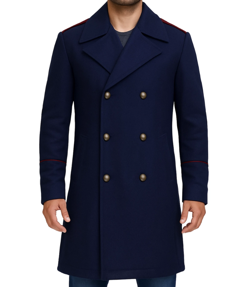 Shop Now Men’s Tailored Navy Wool Double-Breasted Coat