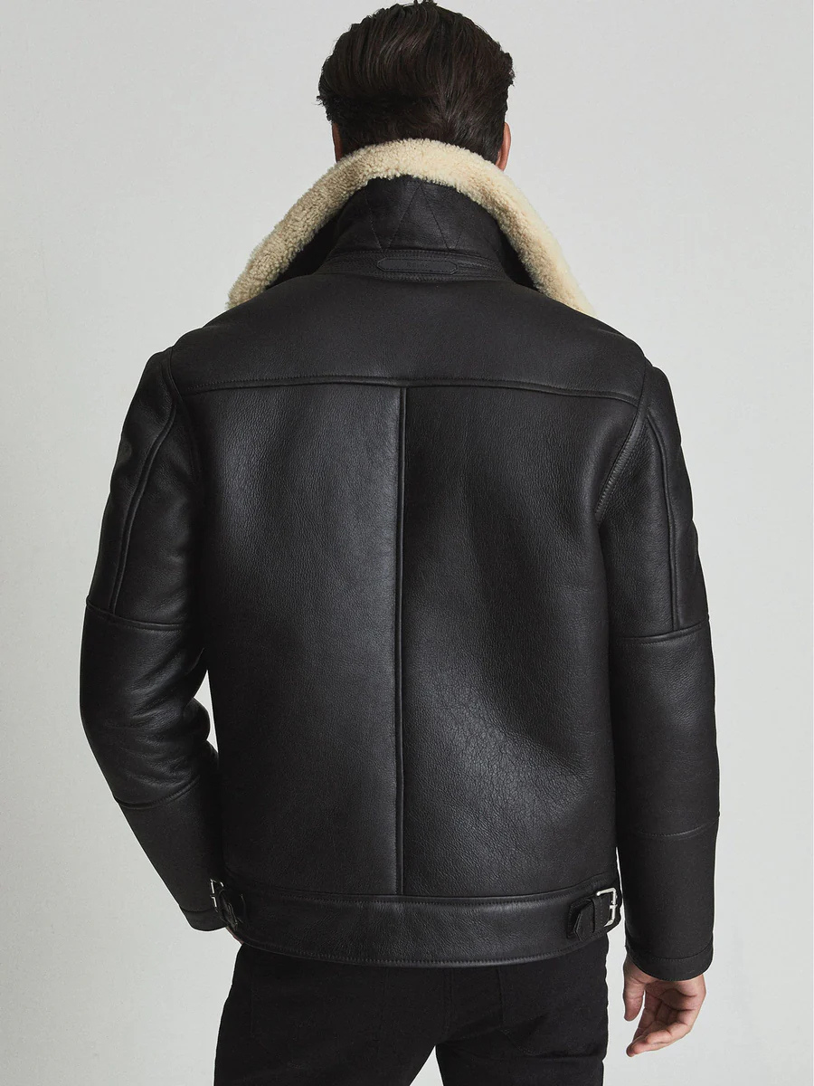 Stay warm in style with the Midnight Black Shearling Flight Jacket. Crafted from premium leather and lined with soft shearling, this jacket combines classic aviator design with modern comfort. Featuring a tailored fit, durable construction, and timeless detailing, it’s perfect for chilly outings, casual wear, or making a bold fashion statement. A versatile and essential piece for every wardrobe.