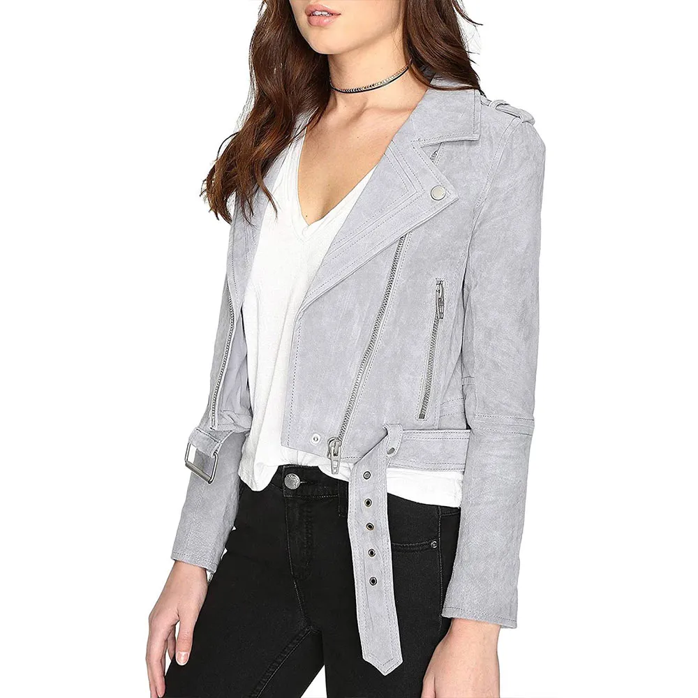 Midori Francis The Sex Lives of College Girls Gray Suede Jacket