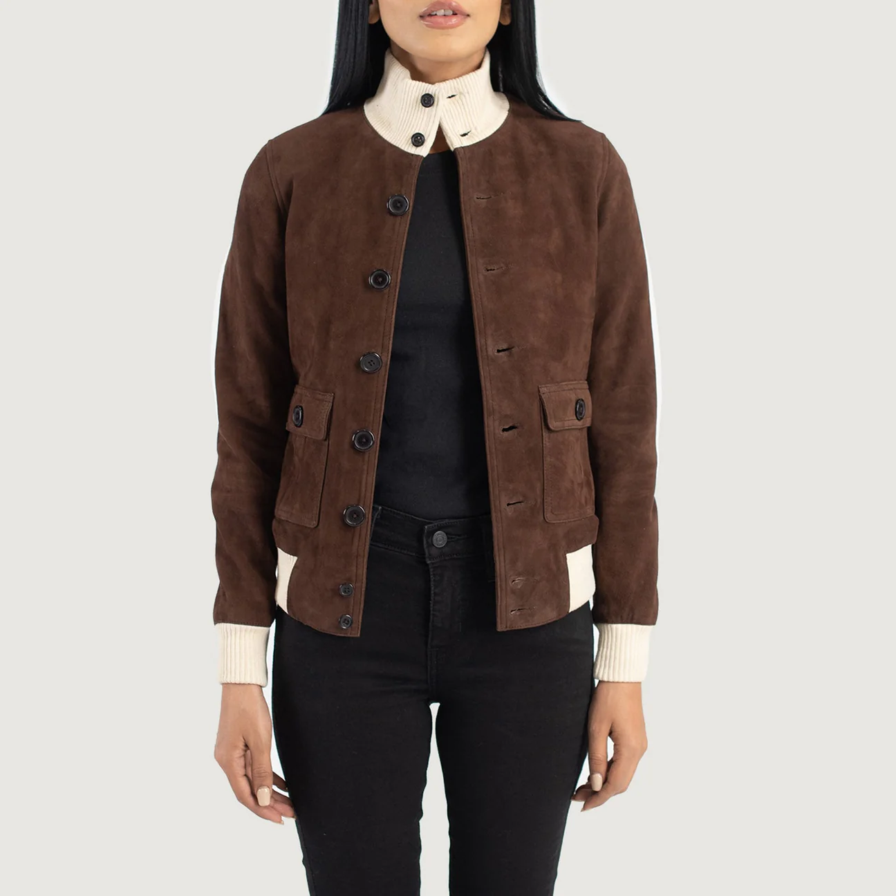 Elevate your style with the Mocha Sasha A1 Suede Bomber Jacket. Crafted from premium suede, it offers a soft, luxurious feel with a sleek, modern design. The warm mocha tone adds a versatile touch, perfect for casual outings or layered looks. Featuring a tailored fit, durable stitching, and classic bomber style, this jacket combines comfort, quality, and timeless fashion for everyday wear.