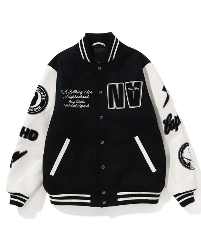 The BAPE x Neighborhood Varsity Jacket is a standout streetwear piece that represents the powerful collaboration between two legendary fashion brands. Designed with a classic varsity silhouette, this jacket delivers a perfect blend of urban style and premium craftsmanship.