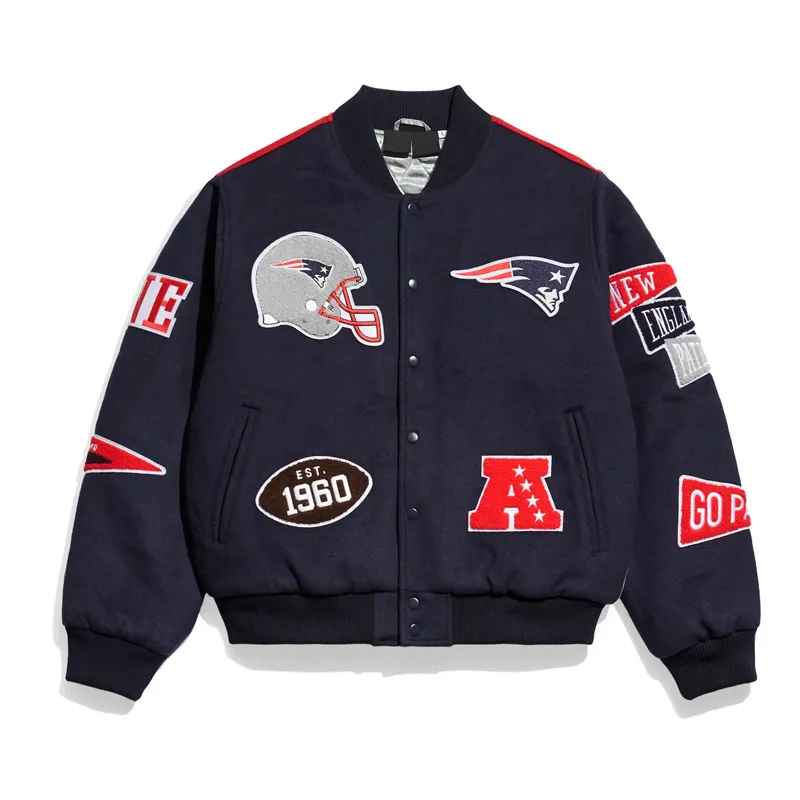 Patriots Heritage Pennant Navy Wool Varsity Jacket