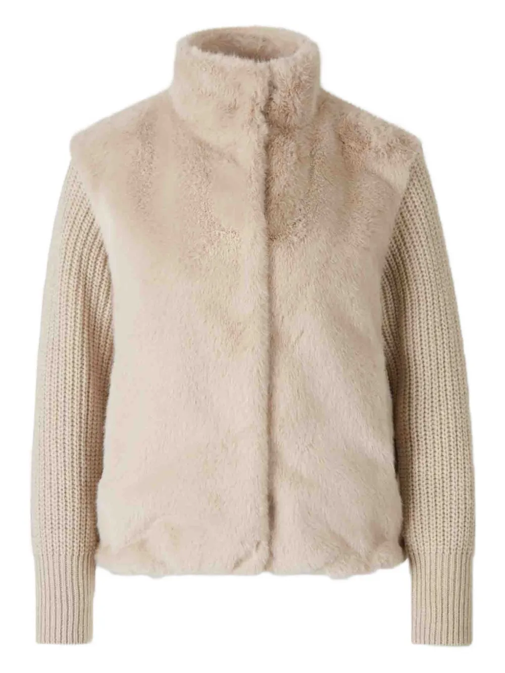 Nova Sand Faux-Fur Ribbed-Cuff Jacket