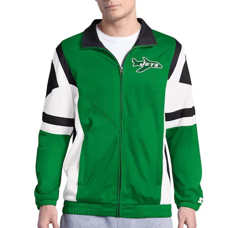 Stay sporty and stylish with the NY Jets Contender Tricot Athletic Jacket. Made from durable tricot fabric, this track jacket offers a comfortable fit and sleek design for everyday wear or game day excitement. Featuring official team branding, it’s perfect for showing your Jets pride in style.