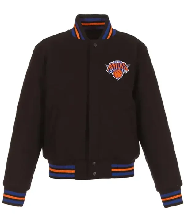 NY Knicks Embroidered Black Varsity Wool Jacket