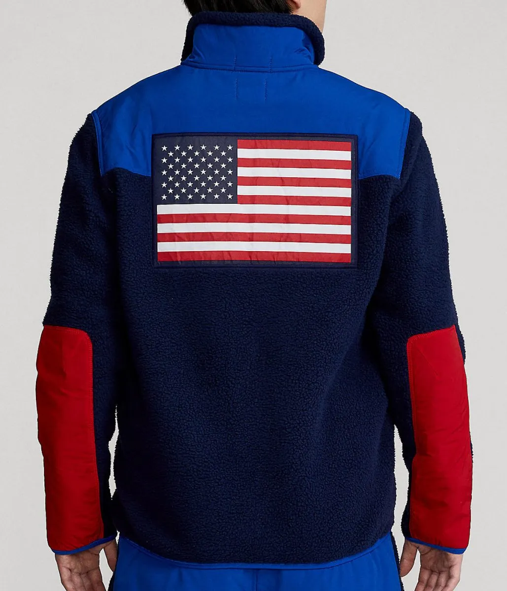 Show your Olympic spirit with the Team USA Hybrid Blue Color-Blocked Jacket. Featuring bold color-blocked panels and official Team USA details, this jacket combines style, warmth, and performance.
