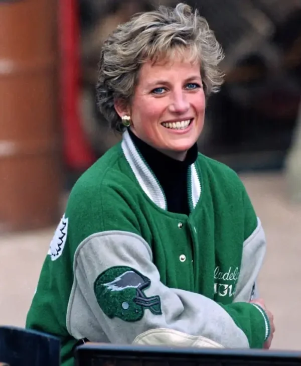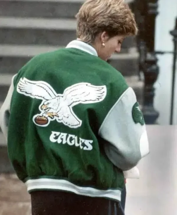 Celebrate iconic style with the Princess Diana Green Philadelphia Eagles Jacket. Inspired by the late Princess Diana’s fashion, this jacket combines elegance with sporty fan appeal.