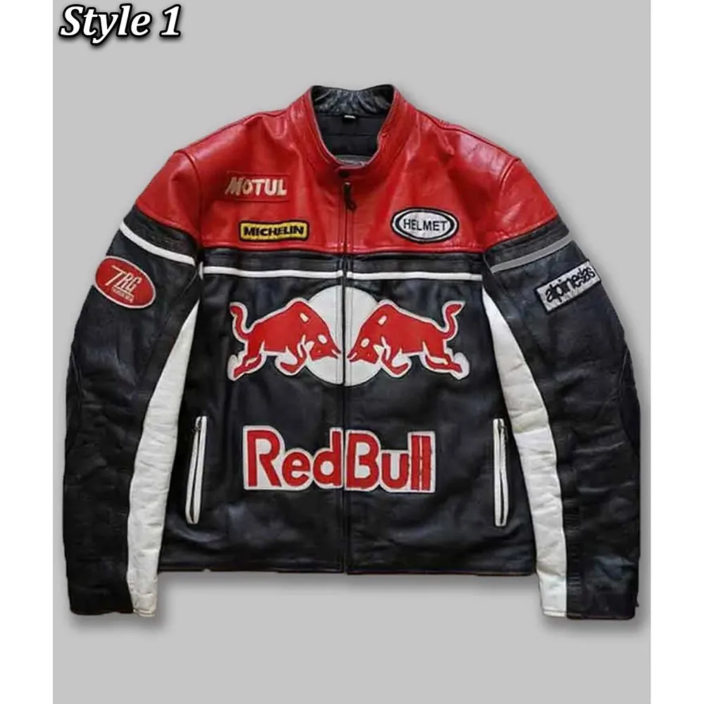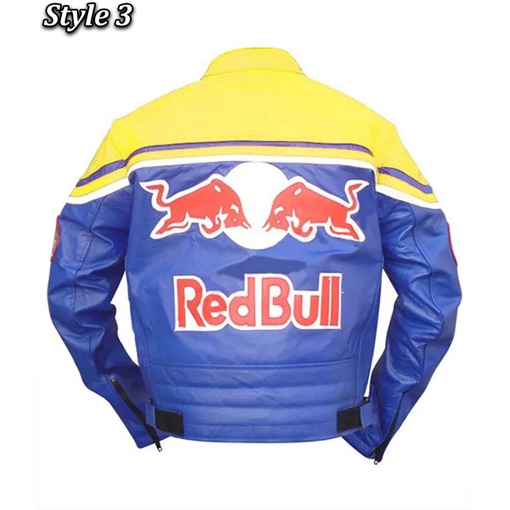 Take your riding style to the next level with this Red Bull inspired motorcycle leather style jacket, designed for bikers and motorsport fashion enthusiasts who want a bold and confident look. Inspired by high-energy racing culture, this jacket delivers a powerful street and track-ready appearance. Made using premium-quality leather-style materials, it offers durability, wind resistance, and a smooth outer finish. The comfortable inner lining ensures ease during long rides, while the structured motorcycle fit enhances protection and style. Secure front closure and functional pockets add practicality for daily use.
