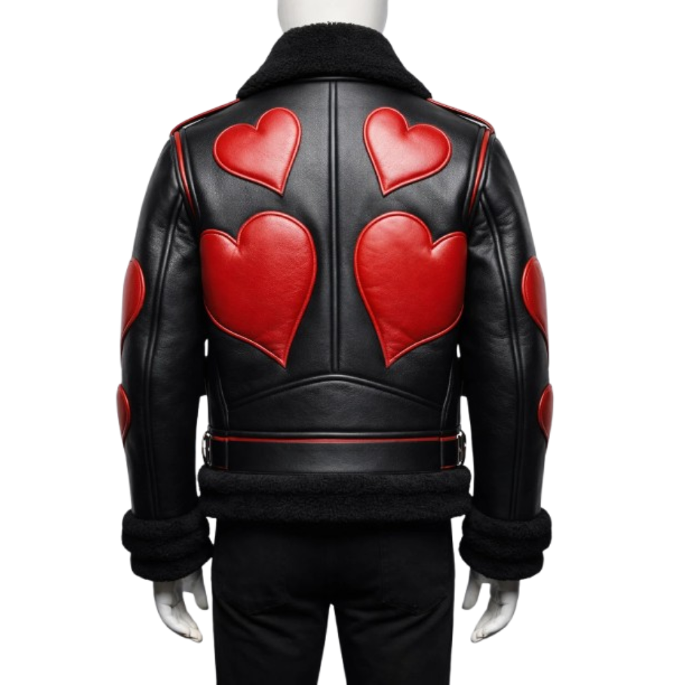 Stay warm and stylish with the Red Heart Black Leather Shearling Jacket. Crafted from premium black leather and lined with soft shearling, this jacket offers both comfort and durability.