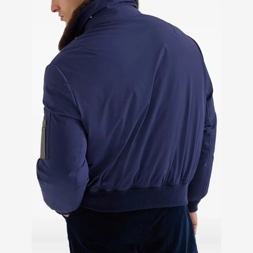 Stay warm in style with this refined winter down bomber jacket. Filled with high-quality down, it provides exceptional insulation while maintaining a sleek, tailored silhouette.
