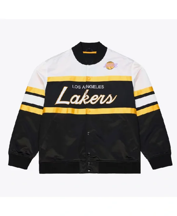 Crafted from premium-quality fabric, it features a striking black and white color combination with stylish script detailing that highlights the Lakers identity. The soft inner lining ensures comfort, while the ribbed cuffs, collar, and hem provide a secure and classic bomber-style fit. A full zip closure completes its sleek design.