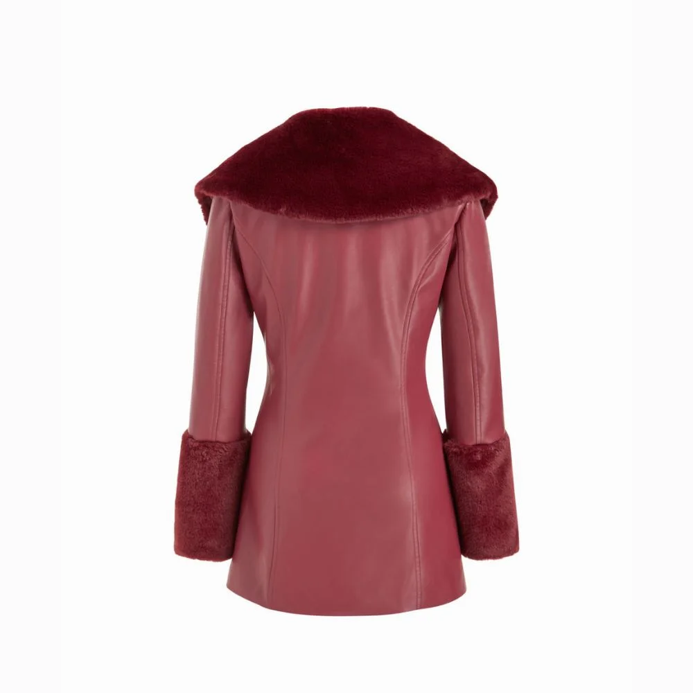 Turn heads with this statement faux leather coat featuring a double-breasted front and luxurious faux fur trim. Designed for a bold, polished look, it combines warmth and style effortlessly. Perfect for evenings out, special occasions, or adding edge to your everyday outfits.