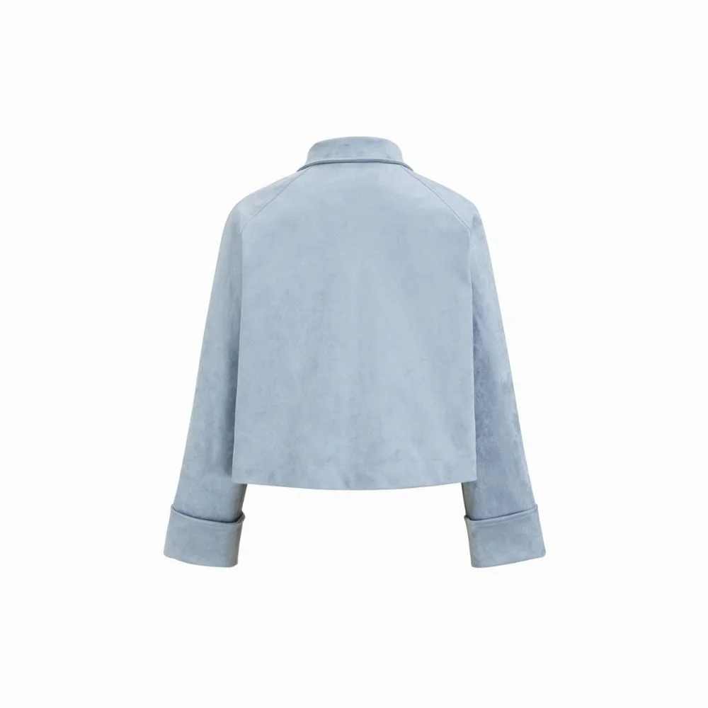 Suede Collar Oversized Crop Shacket