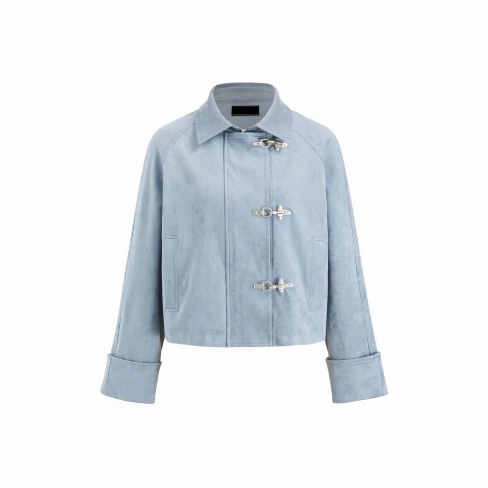 This oversized crop shacket combines casual comfort with stylish details. Featuring a soft suede collar, metal button closures, and roll-up sleeves, it provides a versatile look for layering over everyday outfits. Designed for a relaxed fit, this shacket pairs effortlessly with jeans, skirts, or shorts, making it a trendy and functional addition to any wardrobe.