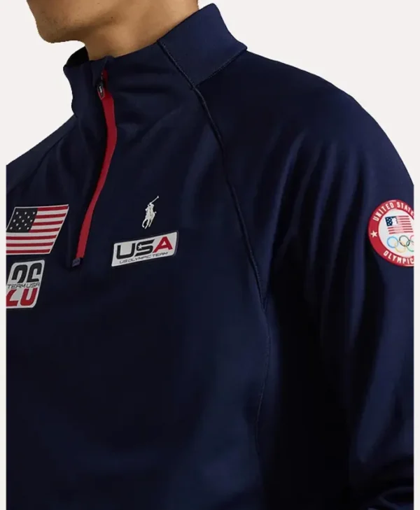 Crafted from high-quality fabric, it offers a soft inner lining, a convenient quarter-zip closure, and a relaxed fit for all-day comfort. The navy color and Team USA branding make it ideal for sporting events, casual outings, or layering in cooler weather, combining classic Polo Ralph Lauren style with national pride.