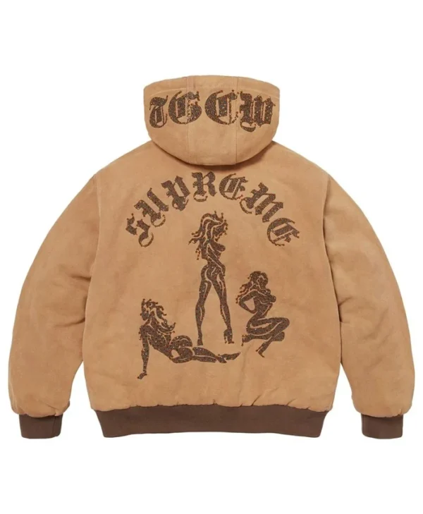 The Supreme The Great China Wall Hooded Work Jacket is a unique fusion of contemporary streetwear and artistic expression. Inspired by the creative vision of Supreme and the craftsmanship of The Great China Wall, this jacket delivers a bold and culturally influenced design.