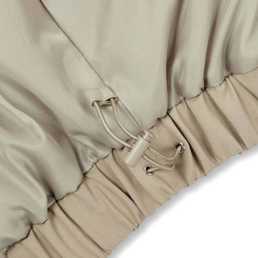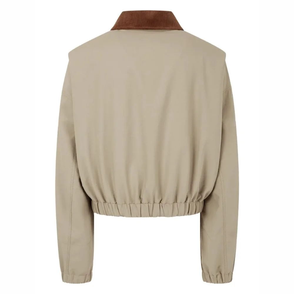 Love this bomber jacket! The beige color is very clean and easy to style. The contrasting collar makes it look unique. Delivery was fast and well packed.