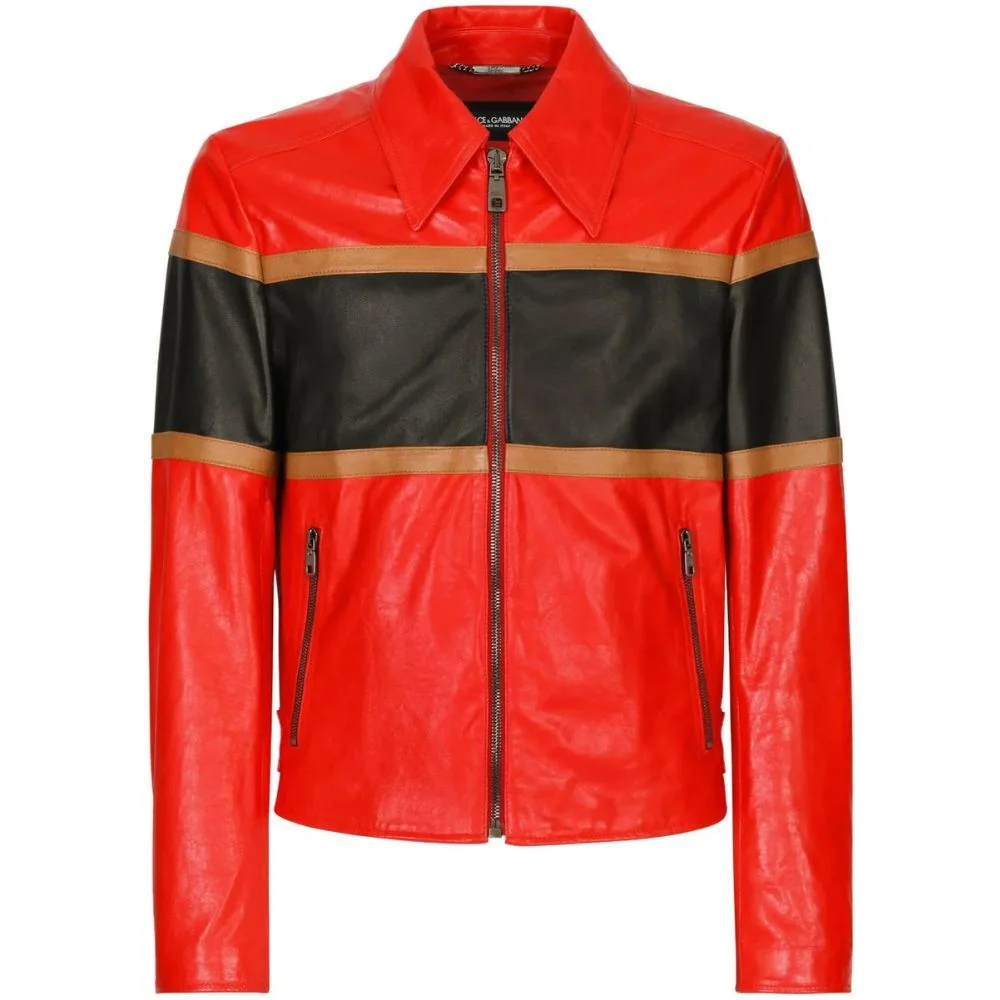 This jacket really stands out. The red and black color combo looks bold and modern. Leather quality feels premium and comfortable.