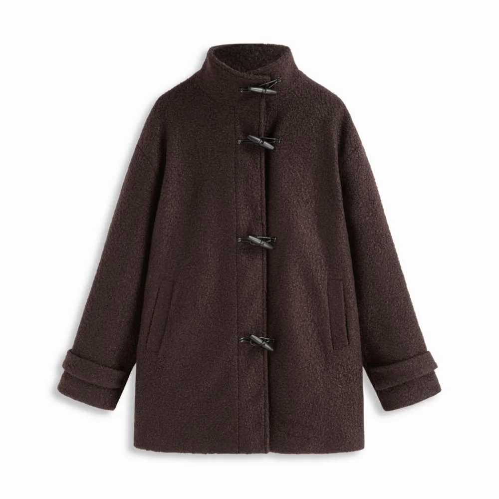 Elevate your winter wardrobe with the Vermont Oversized Wool-Look Coat. Designed for effortless style and comfort, this longline coat features a stand collar and toggle button closure, creating a timeless, modern silhouette. Its oversized fit allows for layering, while the soft wool-look fabric keeps you cozy and chic all season. Perfect for both casual and sophisticated looks, this coat is a versatile staple for any wardrobe.